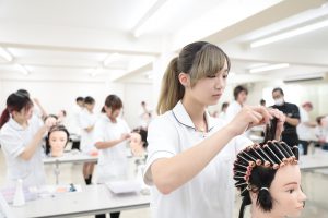 パーマをかけるために、髪にロッドなどを巻く技術です。オープンキャンパスでは、キレイに巻ける方法を基礎からしっかりレクチャーします!初めての方もご安心くださいね😊